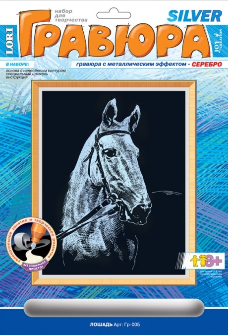 Гравюра с металлическим эффектом - СЕРЕБРО "Лошадь"