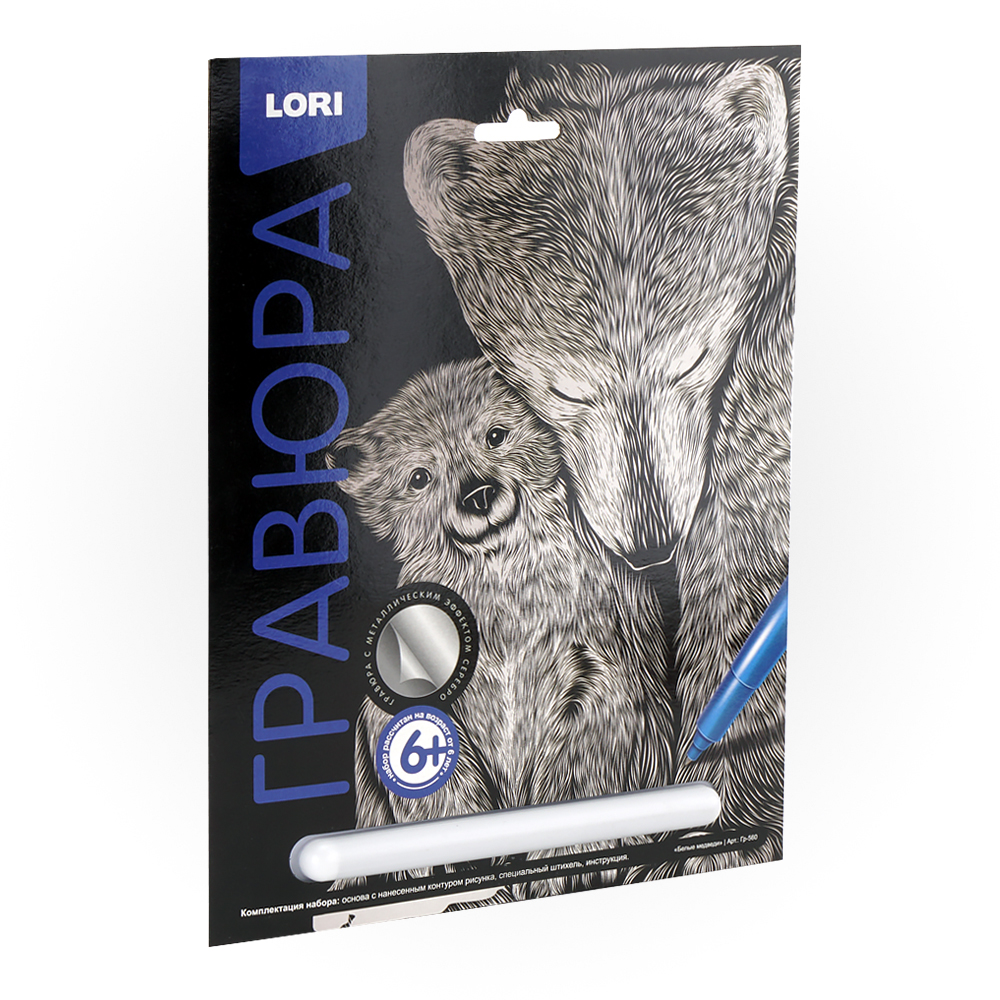 Набор для творчества. Гравюра большая, серебро "Белые медведи"