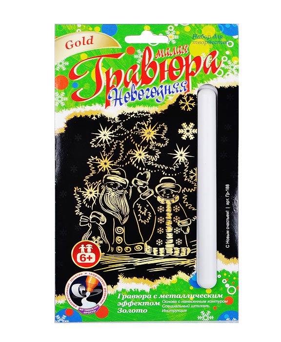 Мы предлагаем Вам набор для создания гравюры. Контур рисунка уже нанесен на черный фон. С помощью специального штихеля изображение процарапывается и из-под слоя краски появляется серебряная основа. В результате получается контрастный рисунок.