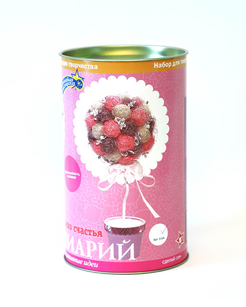 Топиарий или дерево счастья, которое можно «вырастить» своими руками. Большое количество расцветок, разнообразие соцветий и бутонов поможет создать свой волшебный сад дома. Все необходимое имеется в наборе, включая пошаговую подробную инструкцию с фото. В процессе сборки у ребенка развивается мелкая моторика, практические навыки, необходимые в течение всей жизни: умение пользоваться ножницами, клеем, утюгом, объемное мышление, чувство композиции.