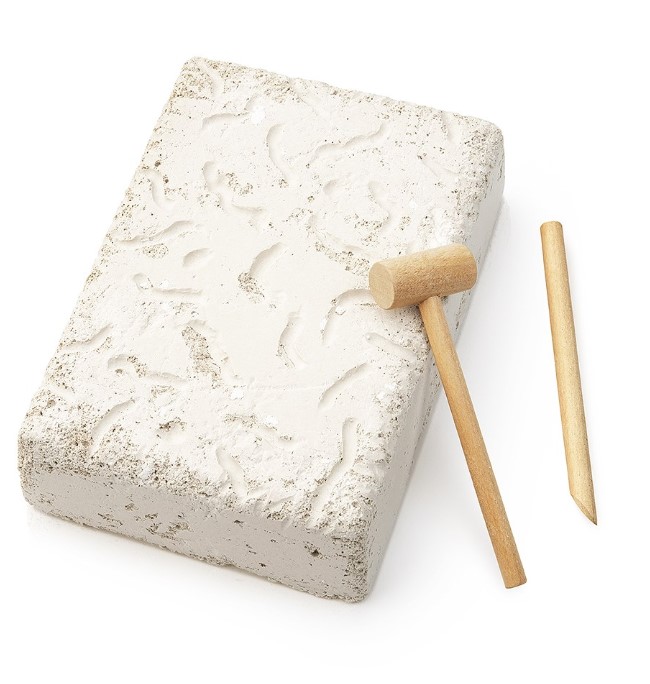 - В наборе: деревянный молоточек, деревянный стек для дробления, окаменелый грунт, артефакты, сундучок из дерева