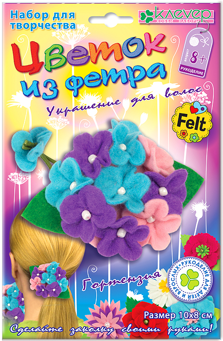 Набор для творчества. Изготовление крашения для волос на резинке "Гортензия из фетра"