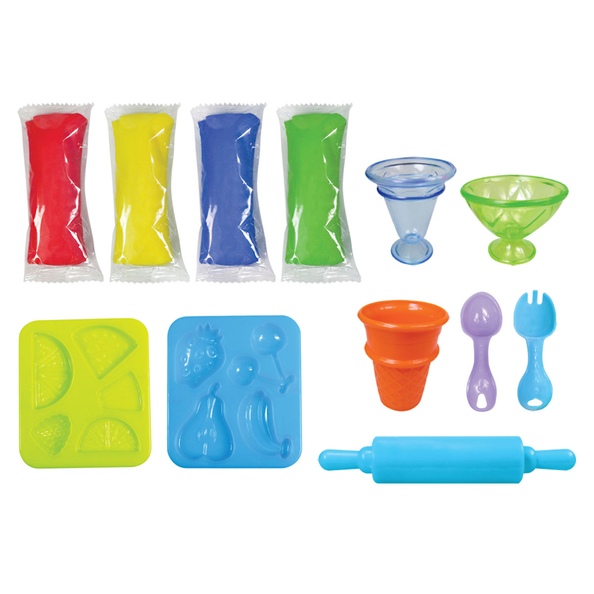 Пломбир в стаканчике, банановый сплит и другие виды мороженого, украшенные ягодами и фруктами - все эти вкусности можно с легкостью приготовить с помощью набора. Делать сладкие поделки понравится и мальчикам, и девочкам. Абсолютно безопасное, не пачкающее руки.