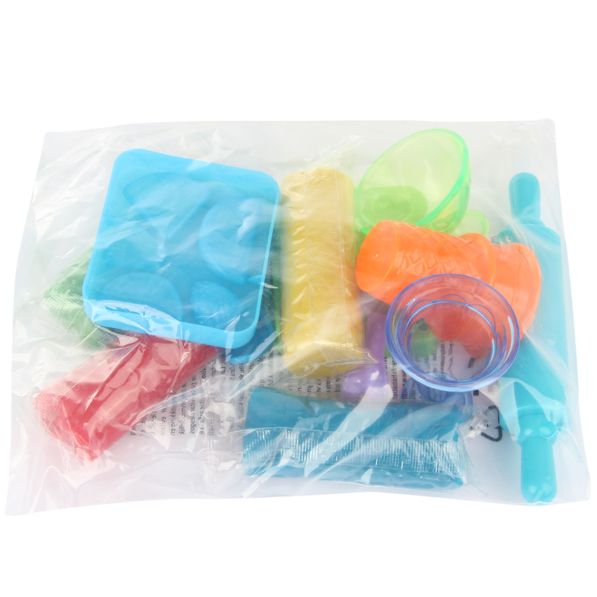 - В наборе: тесто для лепки, 2 формочки, стаканчик вафельный, 2 креманки, скалка, ложка, вилка