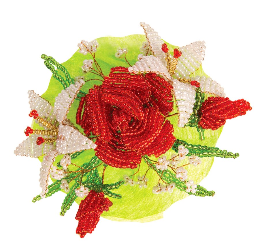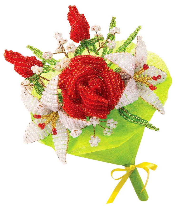 Набор для изготовления букета из бисерных цветов "Розы и лилии" понравится рукодельницам старше 10 лет и взрослым.