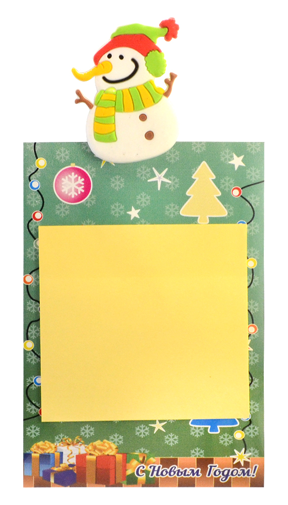 Блок для записей новогодний "Снеговик" на магните с резиновой фигуркой