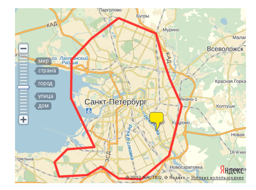 г. Санкт-Петербург в пределах КАД (радиус нашей бесплатной доставки отображен на карте ниже):