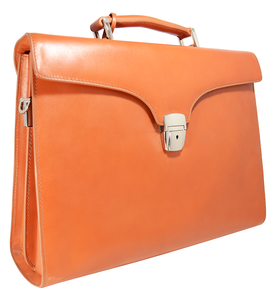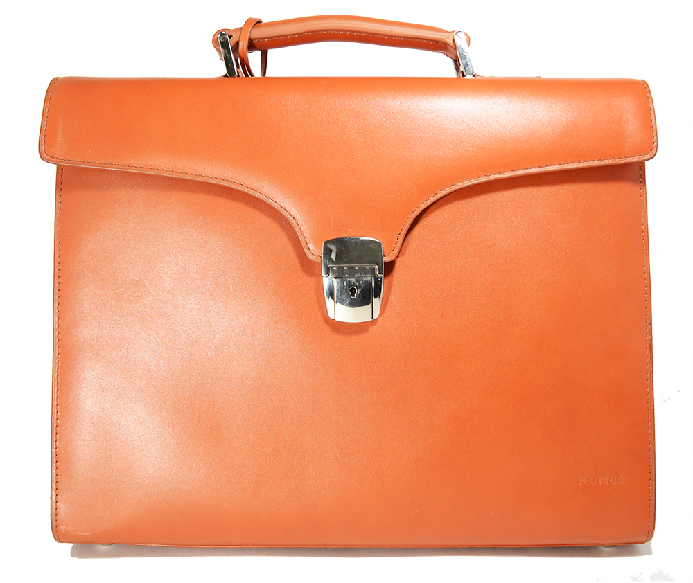 Потфель из натуральной кожи, со съемным плечевым ремнем, с двумя отделениями.