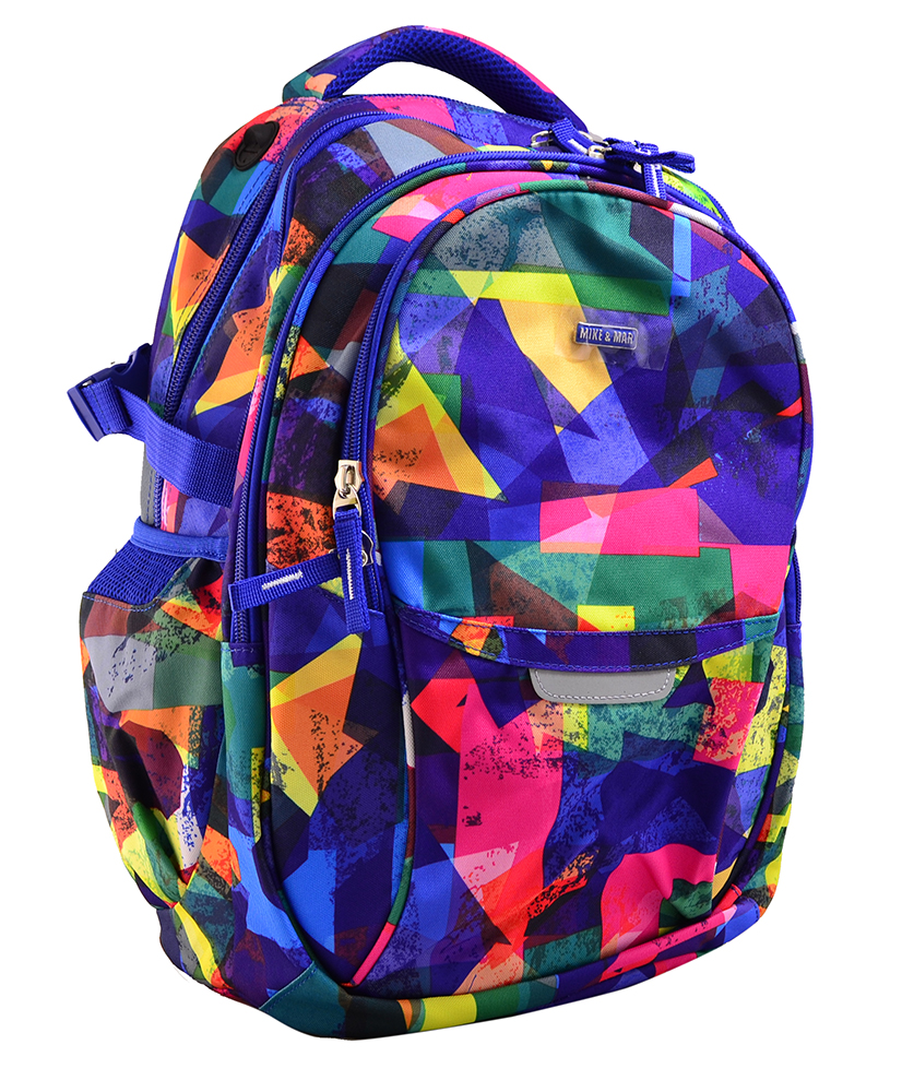 - Передняя стенка рюкзака представлена в виде накладного кармана, образующего дополнительное отделение рюкзака, закрывающееся при помощи застежки молнии (замки с язычками).