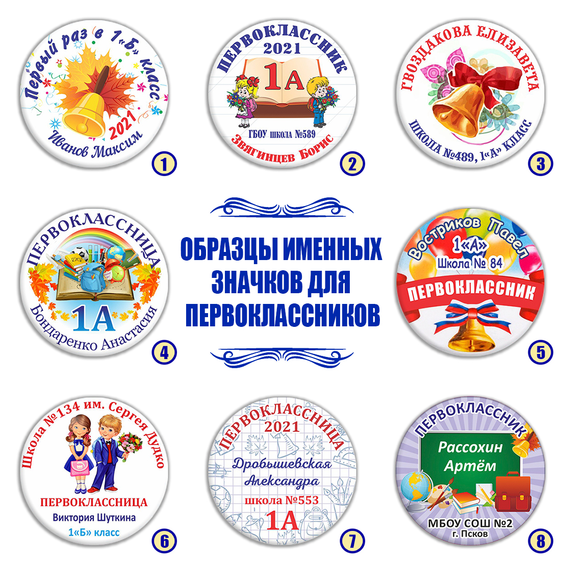 ЦЕНА ИМЕННОГО ЗНАЧКА (№школы, №класса, ФИО ребенка) - 40 рублей