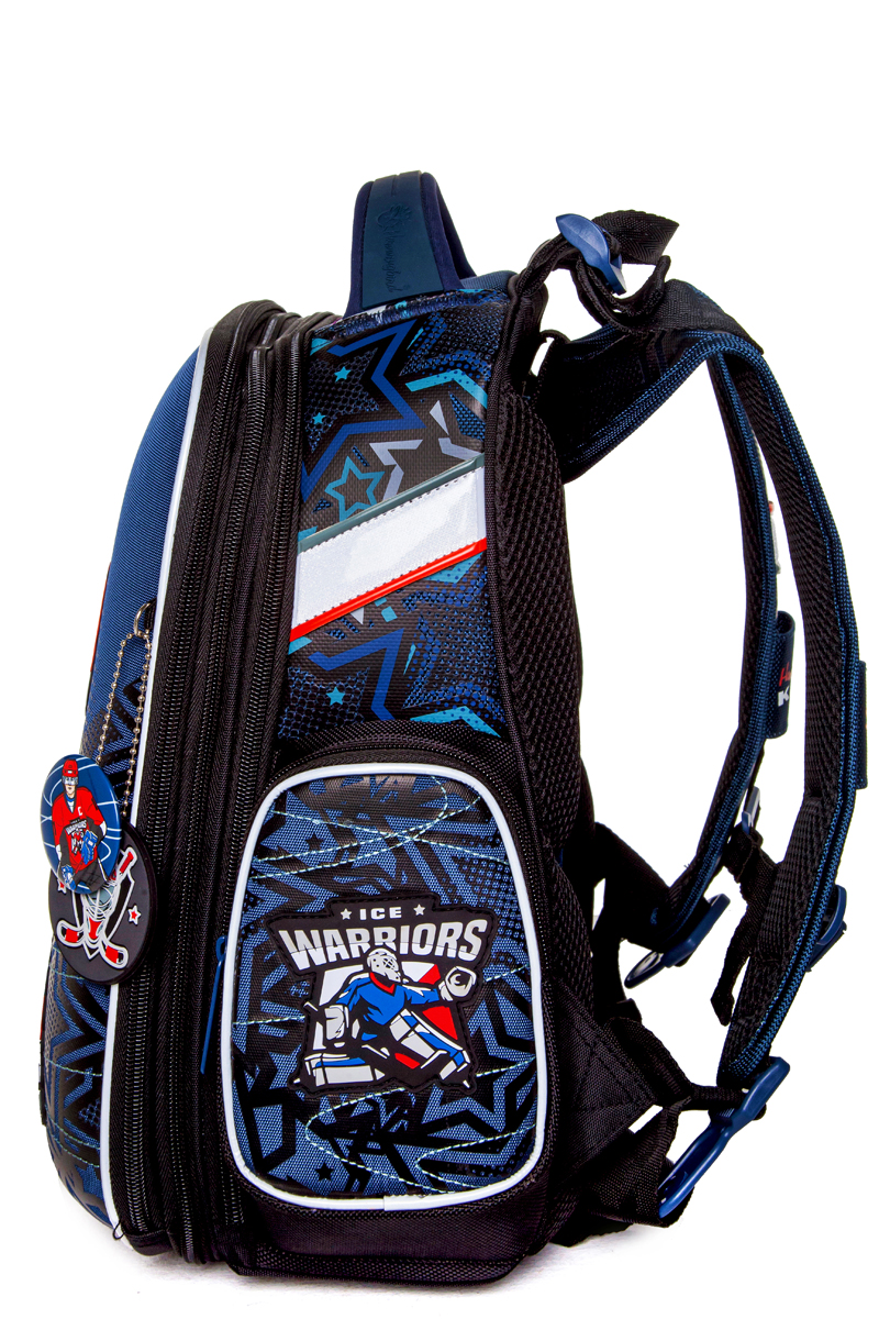 - два больших отделения на молниях. В основном, самом большом отделении расположены жесткие перемычки- вставки, для комфортного размещения тетрадей или учебников. В переднем отделении предусмотрен органайзер с карманом для мобильного телефона, сетчатым карманом для мелочей, отделениями для ручек и карандашей, подвеской для ключей;