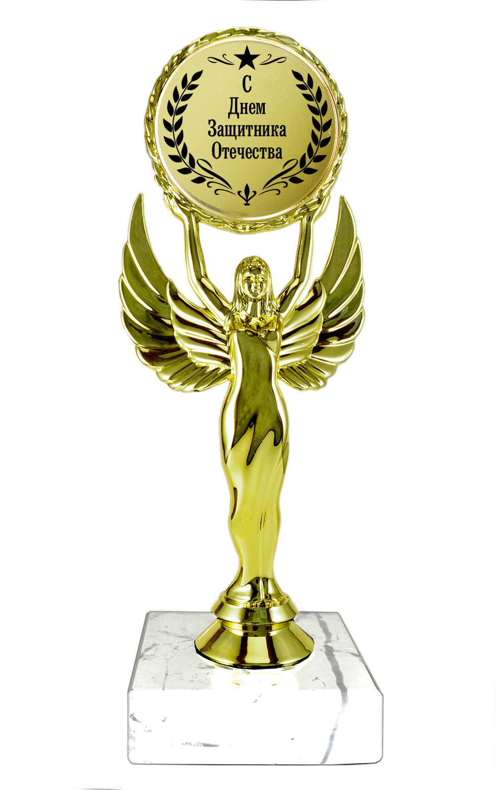 Статуэтка Ника с эмблемоносителем на мраморном камне "С днем защитника отечества"