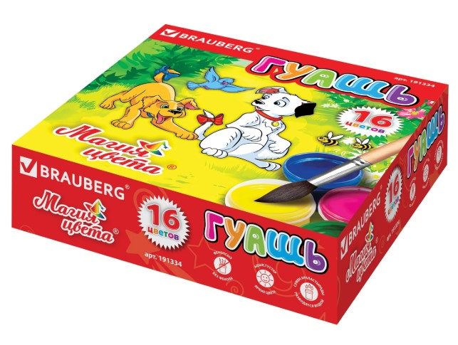 Гуашь 16 цветов по 20 мл BRAUBERG, без кисти, картонная упаковка