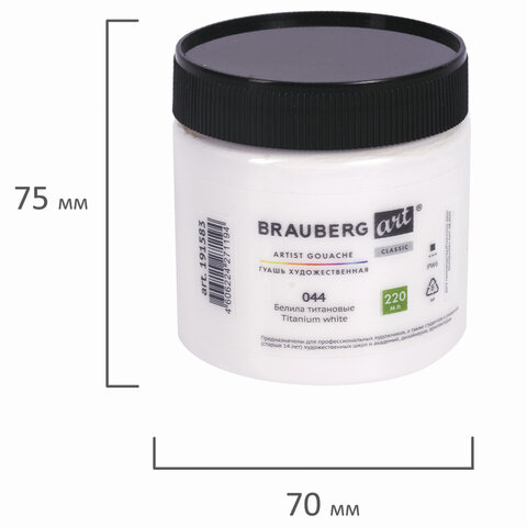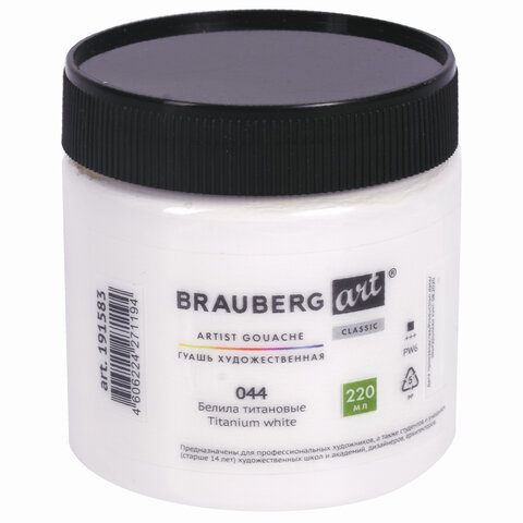 Гуашь художественная BRAUBERG ART CLASSIC, 220 мл, БЕЛИЛА ТИТАНОВЫЕ