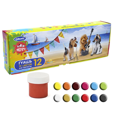 Гуашь 12 цветов, 25 мл, Cullinan "Зверята"
