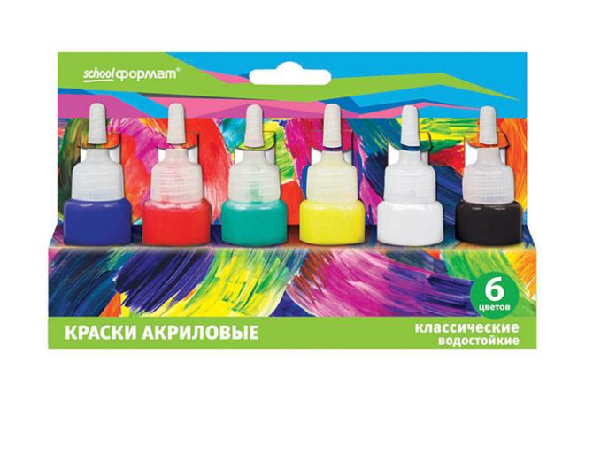 Краски акриловые 6 цветов 27 мл schoolФОРМАТ COLOR GAME