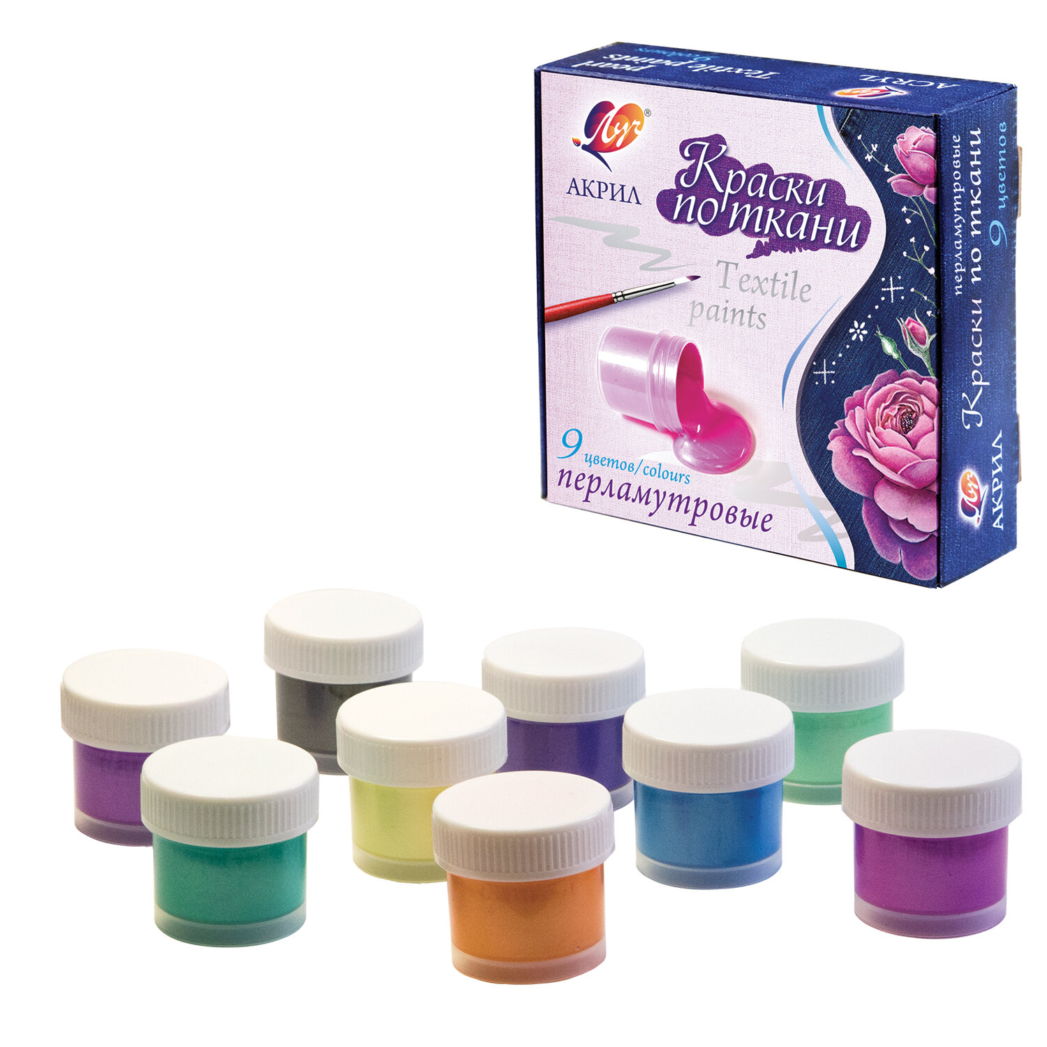 Краски по ткани акриловые перламутровые ЛУЧ 9 цветов по 15 мл, в баночках, 29С 1745-0, 29С 1745-08