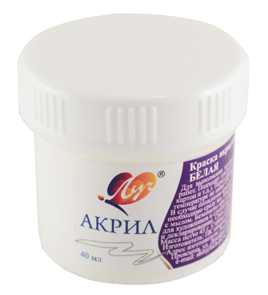 Краска акриловая белая, 40 мл, ЛУЧ в баночке 23С 1458-08 190948