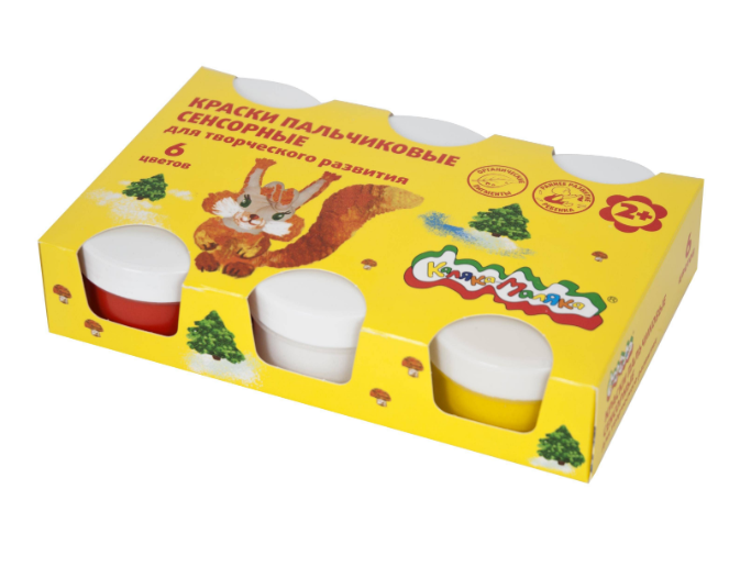 Краски пальчиковые сенсорные Каляка-Маляка 60 мл, 6 цветов 2+