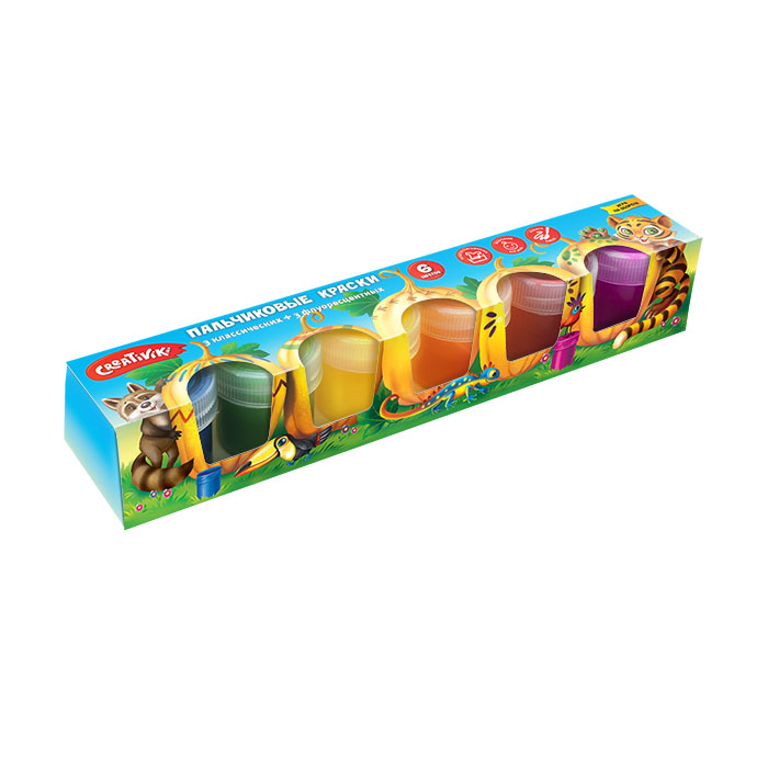 С помощью пальчиковых красок Creativiki ребенок сможет развить мелкую моторику и творческое мышление. На каждой баночке есть стикер с животным, которое ассоциируется с цветом, чтобы маленькие художники научились запоминать цвета.