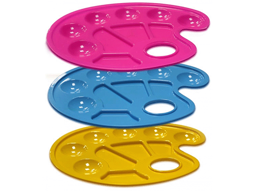6 отделений для красок и 4 отделения для их смешивания, легко отмывается после использования, безупречно гладкая поверхность, сертифицированный полистирол.