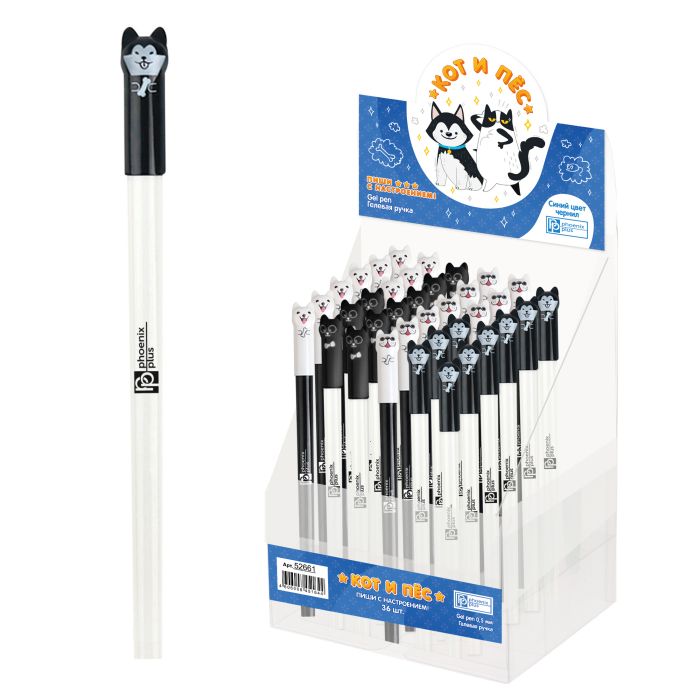 Ручка гелевая "КОТ И ПЕС", 0,5 мм, синяя