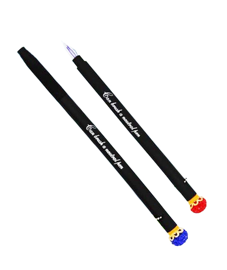 Чернила легко удаляются с бумаги специальным ластиком, встроенным в колпачок ручки. В комлекте есть подвеска в виде листа.