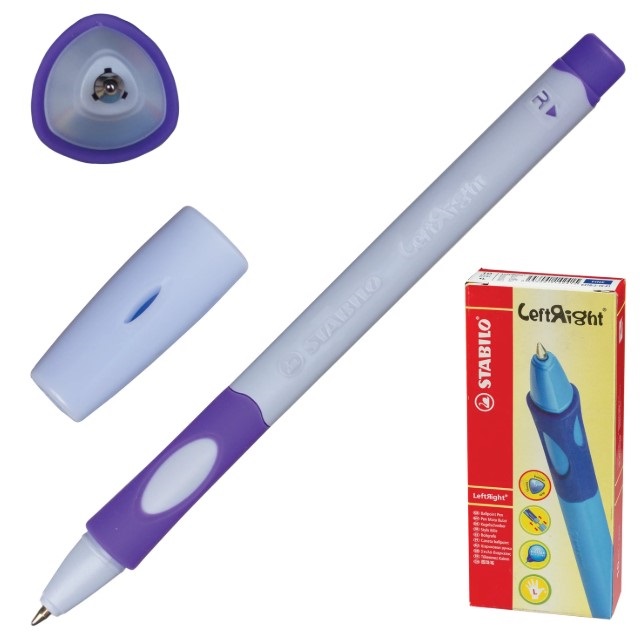 Ручка шариковая синяя, с грипом для правшей, корпус лавандовый, узел 0,8 мм, линия письма 0,4 мм STABILO "Left Right"