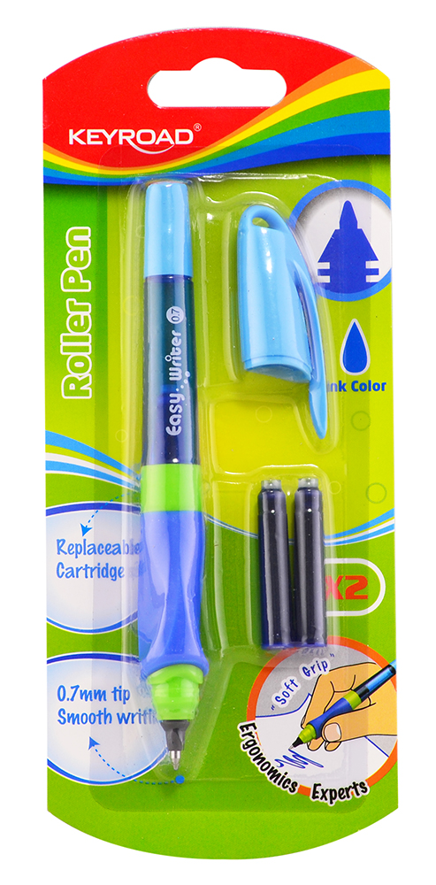 Ручка роллер 0,7 мм синяя "Keyroad", прорезиненный держатель, 2 стержня, KR971173, 125105