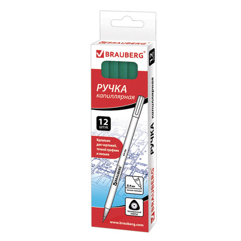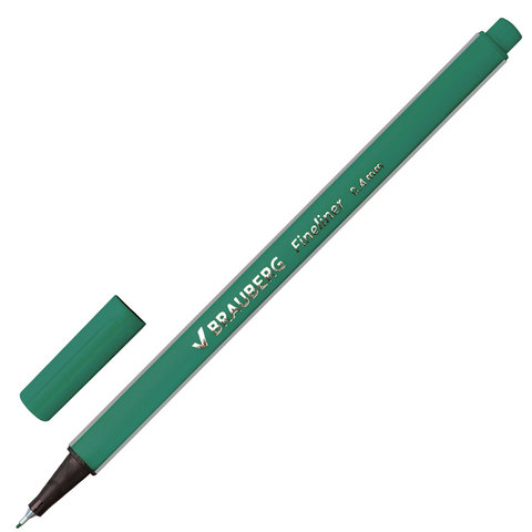 Ручка капиллярная темно-зеленая BRAUBERG "Aero", трехгранная, металлический наконечник, 0,4 мм 142251