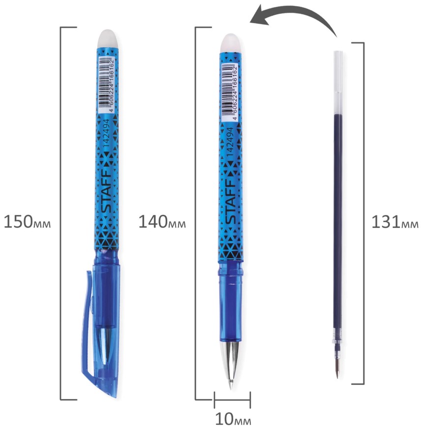 Ручка гелевая, 0,5 мм, синяя, пиши-стирай, STAFF