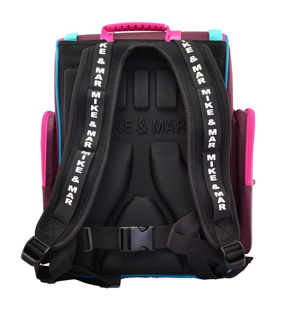 - Уникальные плечевые лямки из неопрена (высокоэластичный микропористый материал) имеют форму «маечки», повторяющую контур шейного отдела позвоночника. Резинка, пропущенная сверху и прошитая в нескольких местах, обеспечивает дополнительную защиту от растягивания. Лямки из неопрена с анатомической, скругленной формой удобно регулируются по размеру, что обеспечивает равномерное распределение веса ранца и позволяет его легко надевать и снимать даже на объемную одежду.