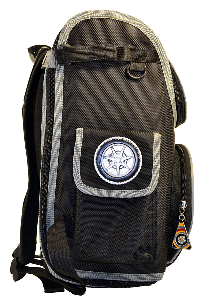 - На лицевой стороне ранца расположен объемный карман на молнии, который внутри оснащен отделениями для ручек, карандашей, мелкой канцелярии, отделением для мобильного телефона и бейджиком на шнурочке для проездного документа;