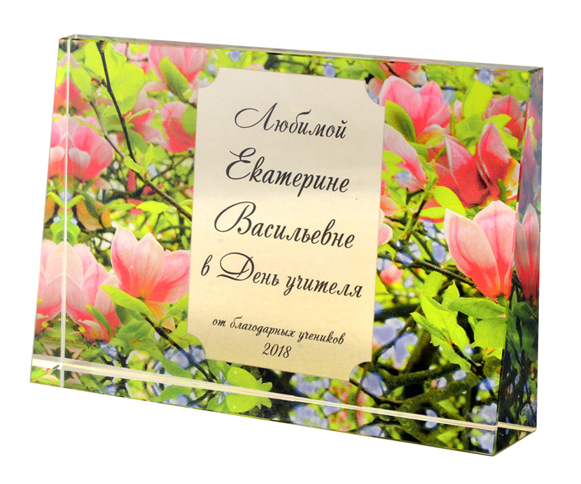 Стеклянная награда именная "Лучшему учителю" (Весенняя)