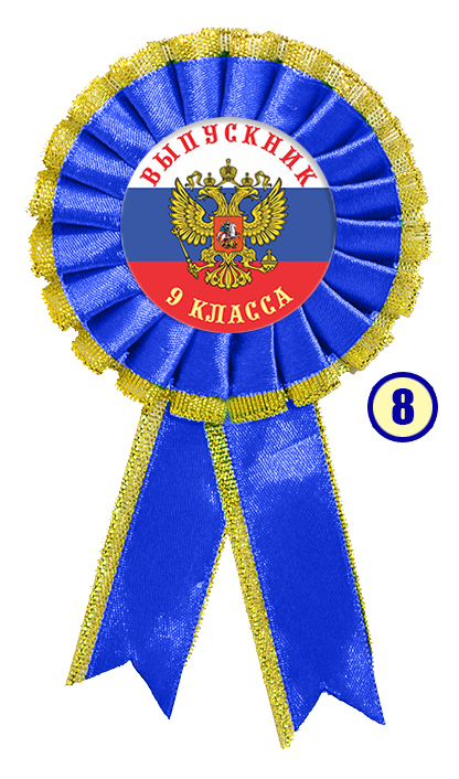 Значок-розетка из атласной ленты *Выпускник 9-го класса"*
