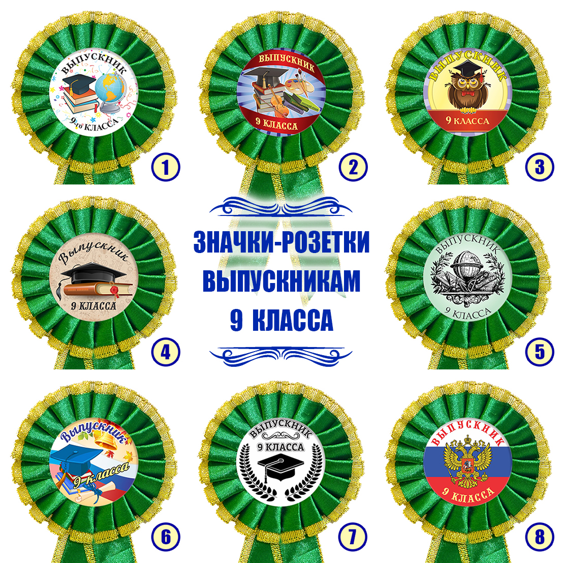 Значок-розетка из атласной ленты *Выпускник 9-го класса"