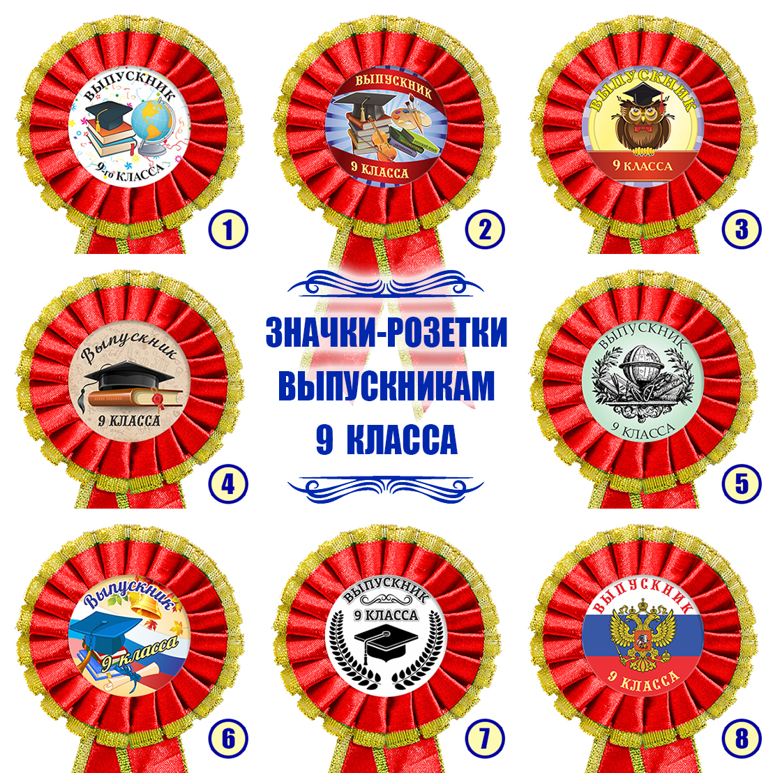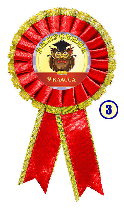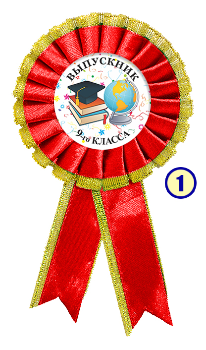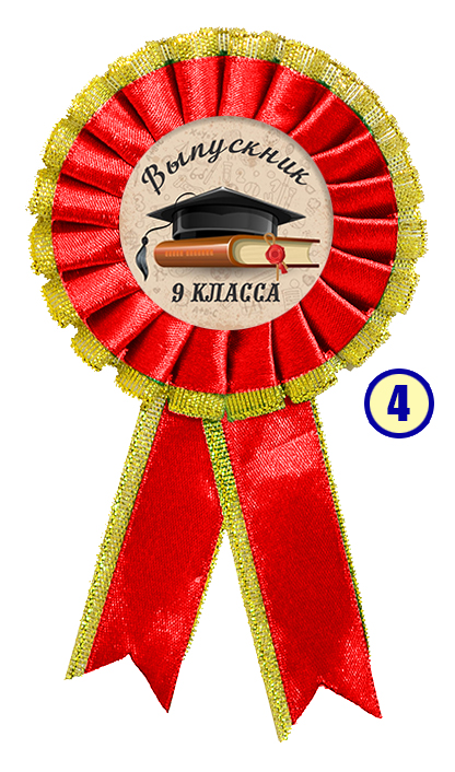 Значок-розетка из атласной ленты *Выпускник 9-го класса"*