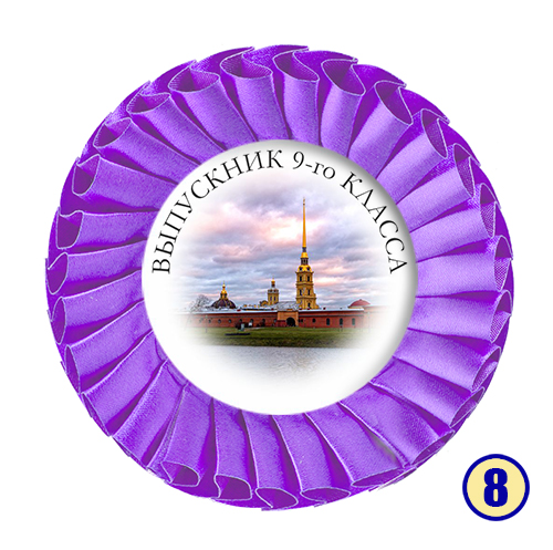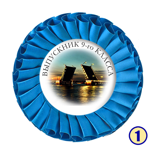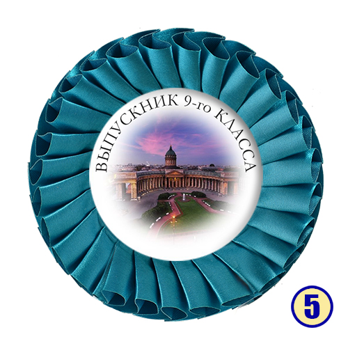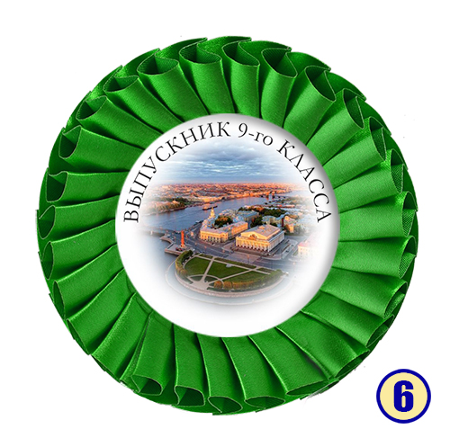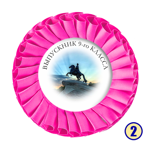 Значок-розетка из атласной ленты "Выпускник 9-го класса" с городом