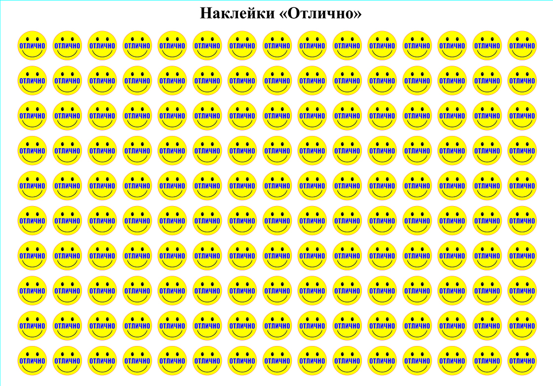 Наклейки с забавным "смайликом" и надписью "Отлично" помогут учителям младших классов отметить успехи малышей.