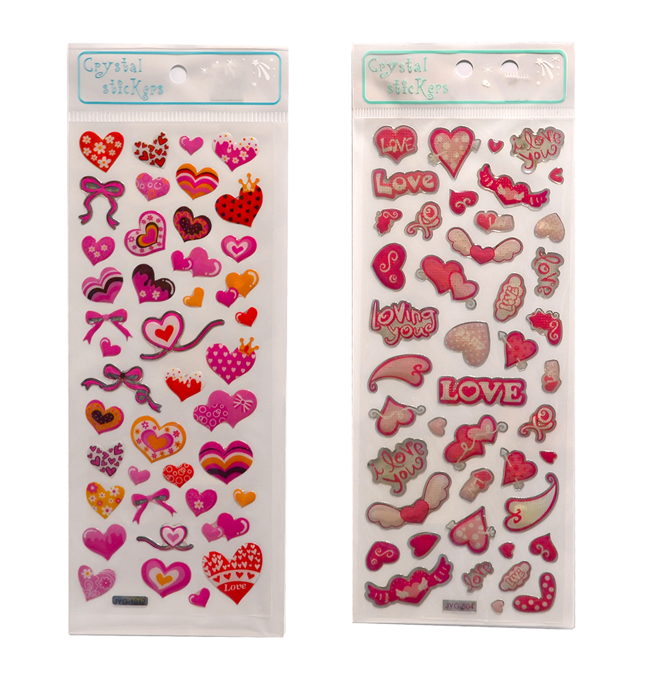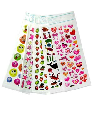 Наклейки BL-184 объемные металлик "Сердечки.Рыбки.Фрукты.Звезды.Смайлы" ассорти JYG-1012
