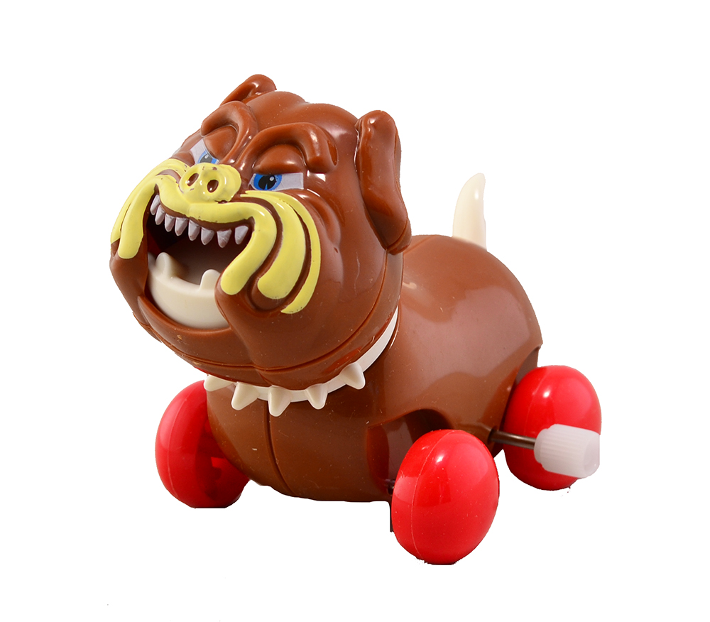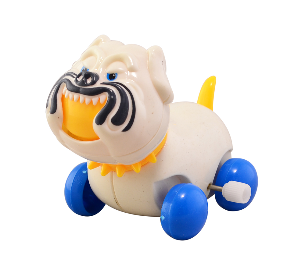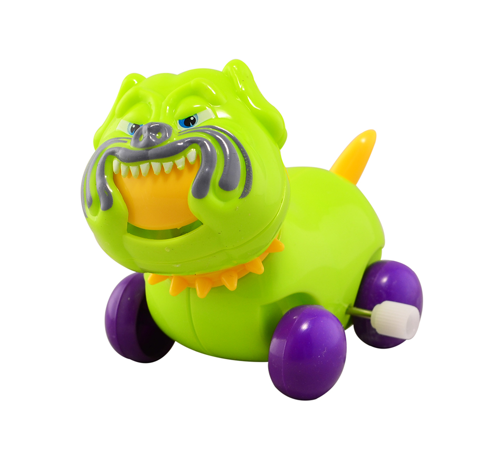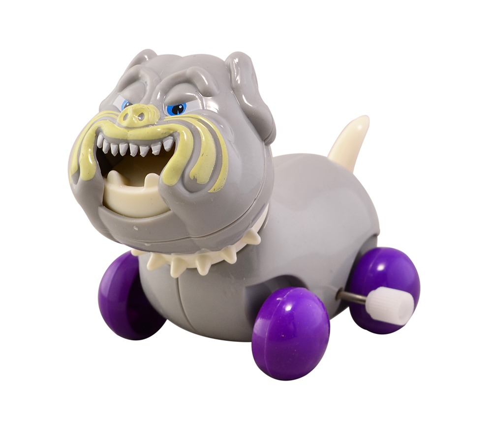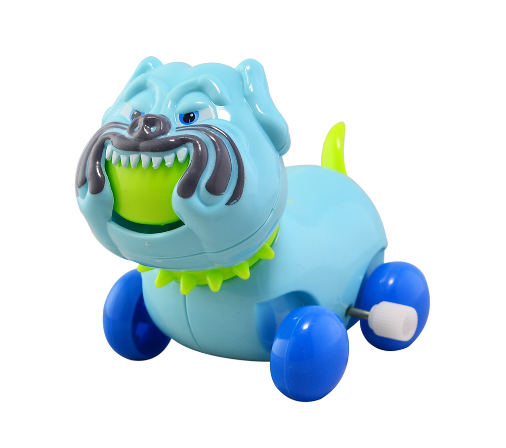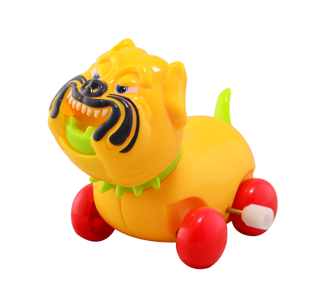 Забавная и яркая заводная игрушка порадует любого ребенка! Привести в движение игрушку очень просто - достаточно покрутить несколько раз колесико сбоку и собачка "побежит" веляя хвостом! У игрушки подвижные голова, челюсть и хвост!