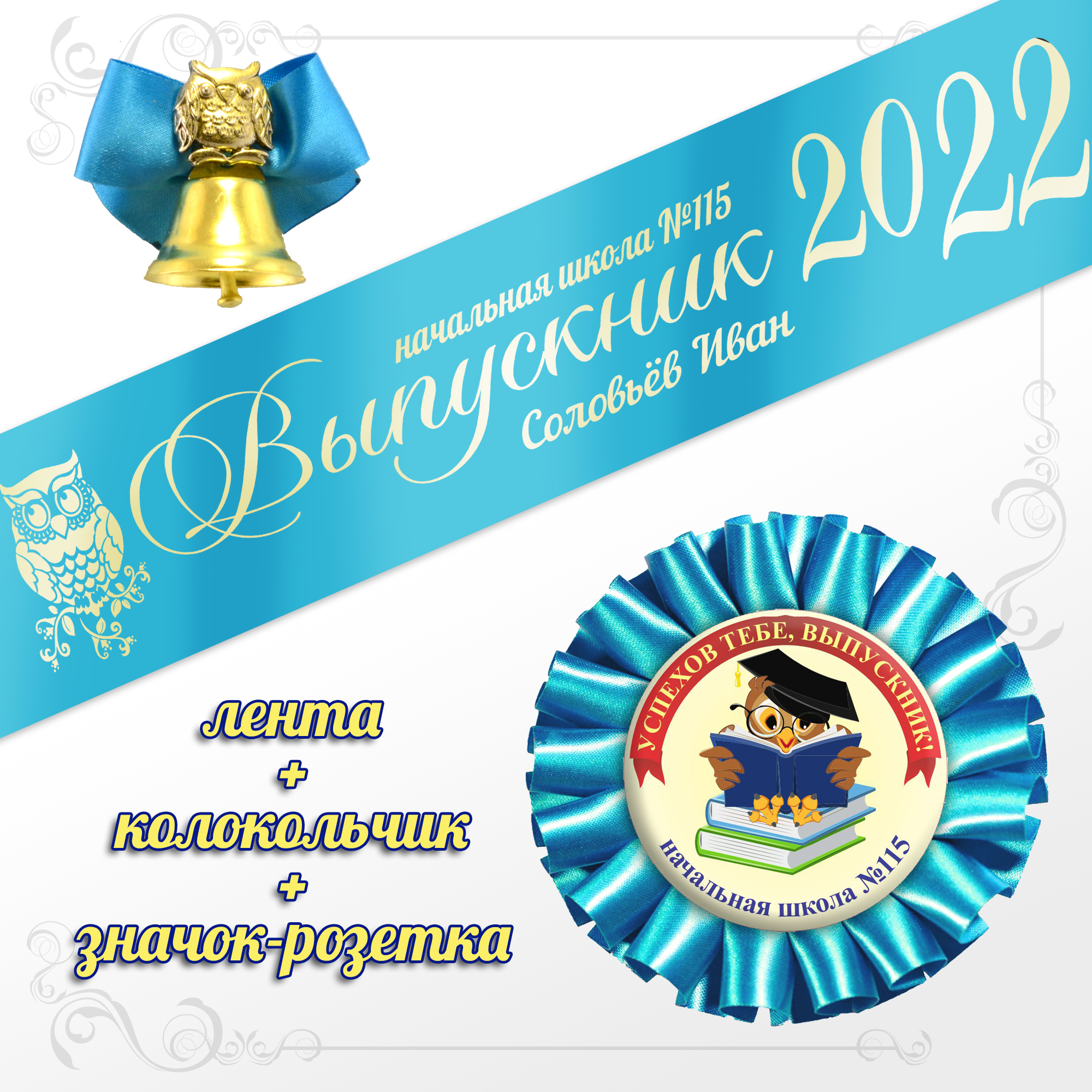 - В наборе: атласная лента с фамилией, именем и с названием или номером учебного заведения, колокольчик, значок-розетка