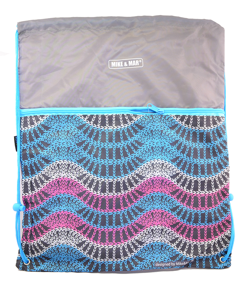 Мешок состоят из двух отделений, одно из которых под молнией, предназначенное для сменной обуви.