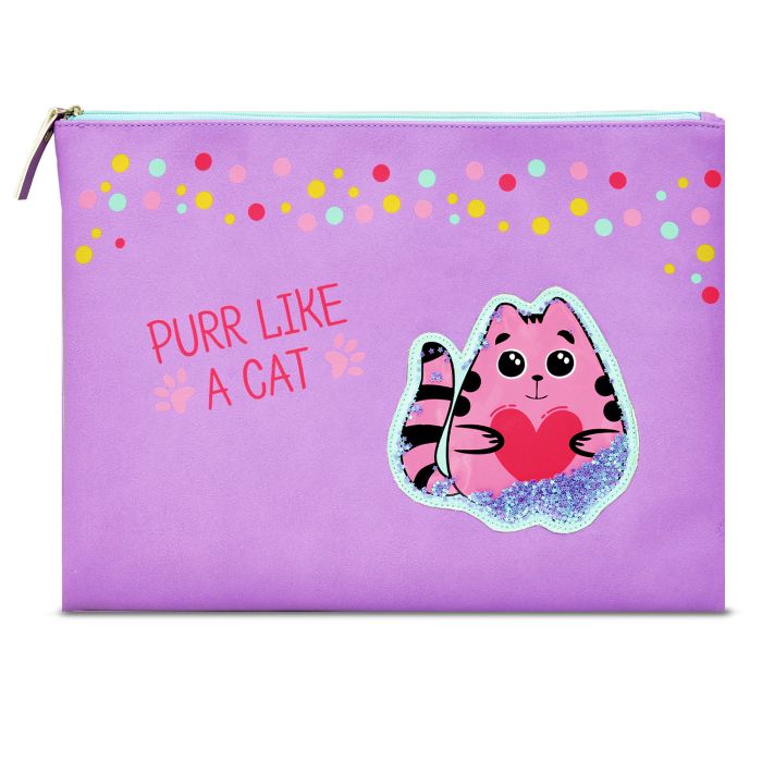 Папка А4 на молнии 1 отделение "Котик" искусственная кожа
