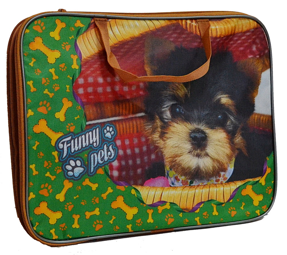 Папка школьника ф-А4 *Забавный щенок* с ручками, молния по кругу.