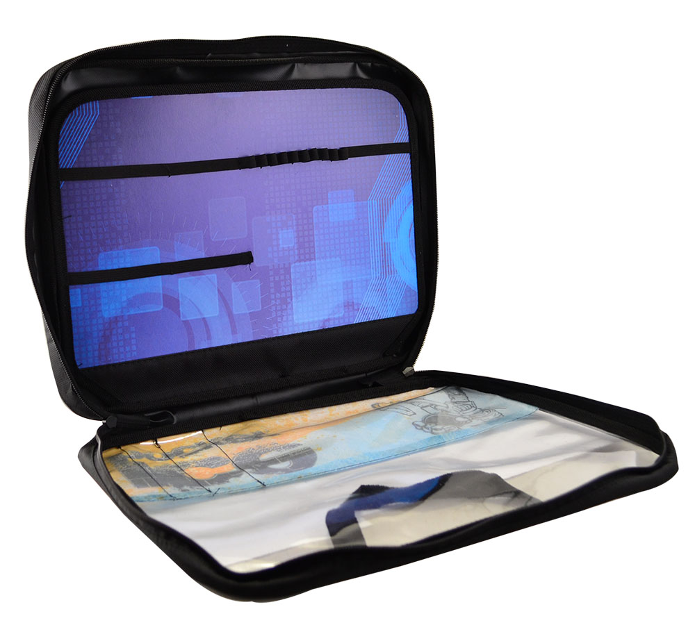 - комбинированная лицевая сторона: мягкий, прозрачный пластик с рисунком на ткани в нижней части