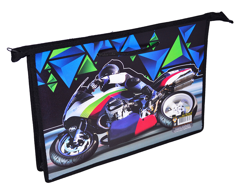 Папка А4 детская на молнии с ручками "Гоночный спортбайк"