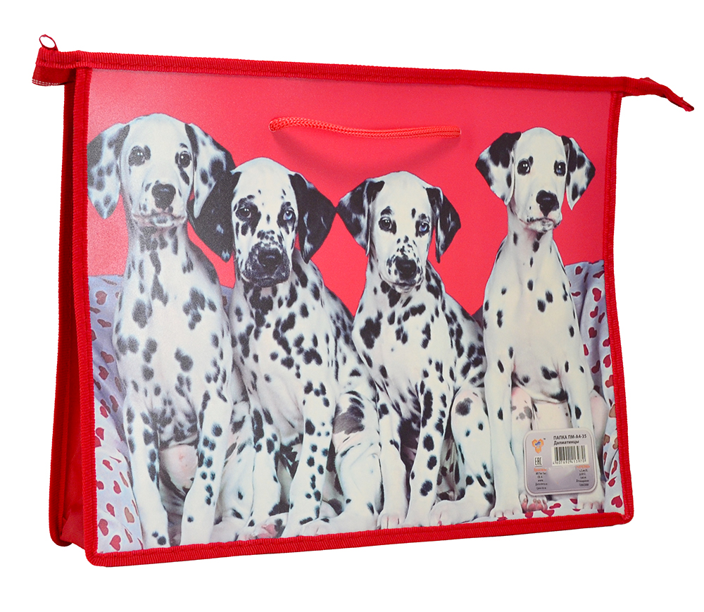 Папка А4 детская на молнии с ручками "Далматинцы", печать на пластике
