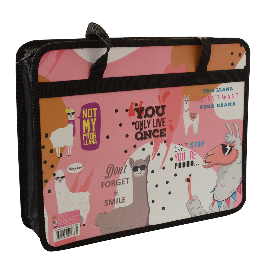 Папка А4 на молнии, с ручками "ГЛАМУРНЫЕ ЛАМЫ"