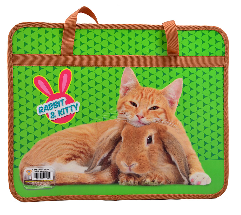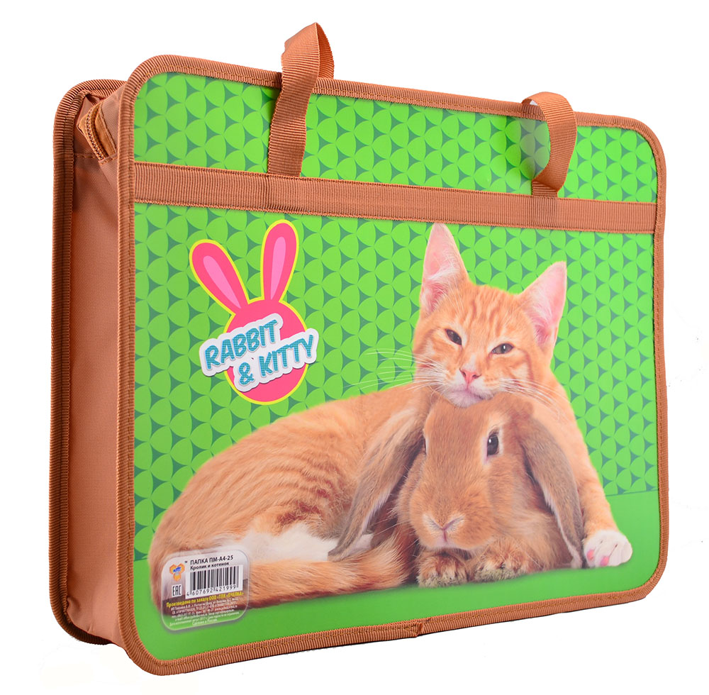 Папка А4 на молнии с ручками "Кролик и котенок 2018" ПМ-А4-25